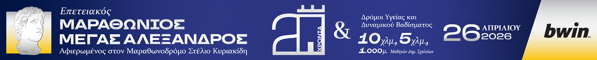 Υπερδιπλάσιες εγγραφές και άριστη αγωνιστική υποστήριξη στον επετειακό 20ό Μαραθώνιο ΜΕΓΑΣ ΑΛΕΞΑΝΔΡΟΣ -bwin! Την Κυριακή 26 Απριλίου θα είμαστε όλοι εκεί!