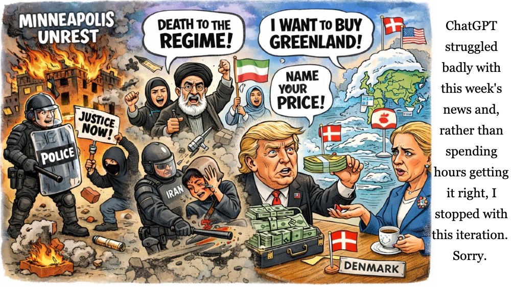Continue readingDemocrats are rampaging again, especially in Minnesota, while ignoring the horrors of Iran, and the memes are flowing freely. Plus, memes for all the other headline stories, whether foreign or domestic.