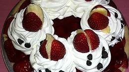 French toast with fresh bananas, blueberries, strawberries and whipped cream