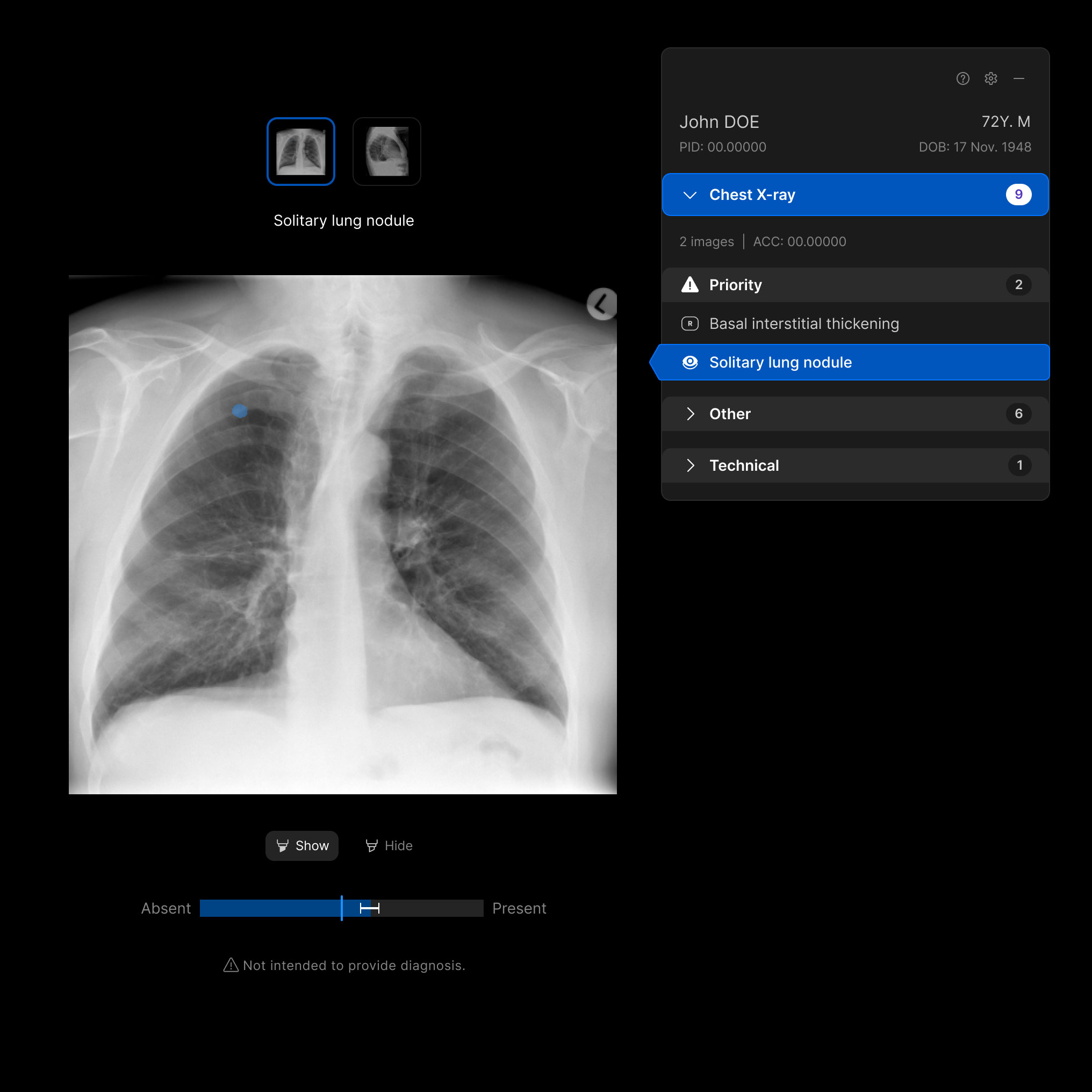 A comprehensive decision-support AI solution for chest X-rays, that detects up to 124 findings in under 20 seconds.