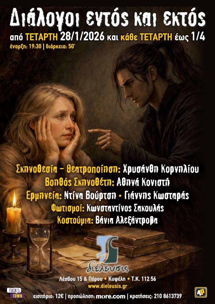 Η θεατρική παράσταση «Διάλογοι εντός και εκτός» βασίζεται σε διήγημα της θεατρολ...
