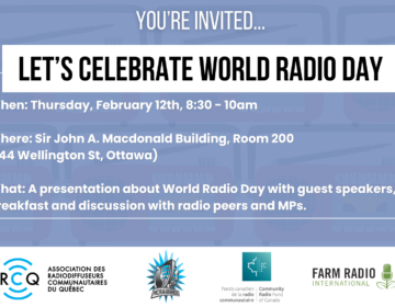 For Immediate Release The National Campus and Community Radio Association (NCRA/ANREC) and Farm Radio International (FRI), among others, to celebrate World Radio Day event in Ottawa. OTTAWA, ON.- January 10th, 2026 – On February 12th, join us once again to celebrate …