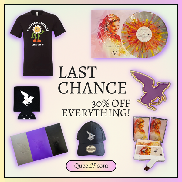 Last chance to take advantage of the QueenV.com holiday sale! Lots of great gifts for music lovers including vinyl, tee shirts, journals, hats, and more all 30% off through the end of the day!