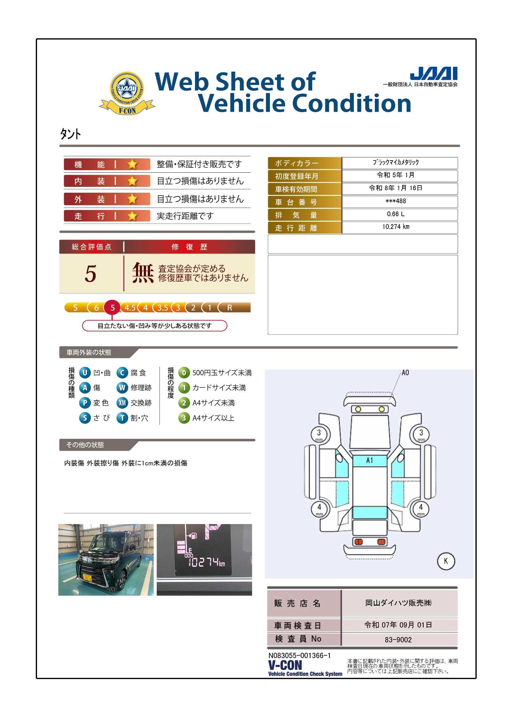 安心6ヶ月点検 | -- | 点検記録簿で確認できる整備歴はありません。 | ||||
