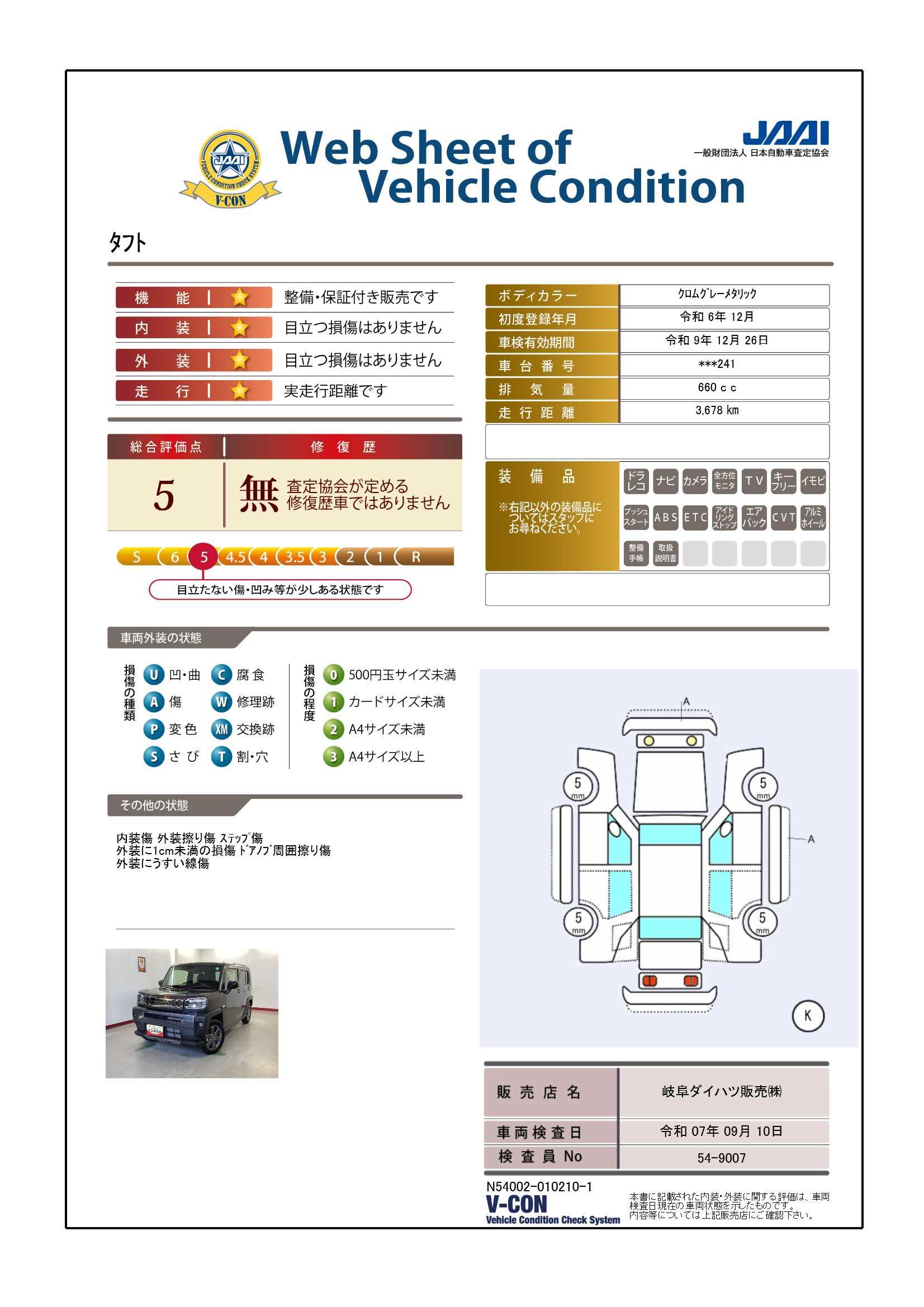 ダイハツ認定中古車なら展示車両の状態を開示しております。展示車両に自信があるからこそ出来るサービスです。