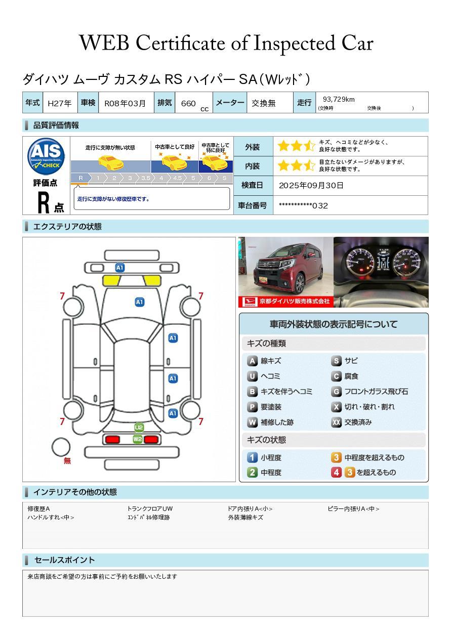 車両状態証明書付き