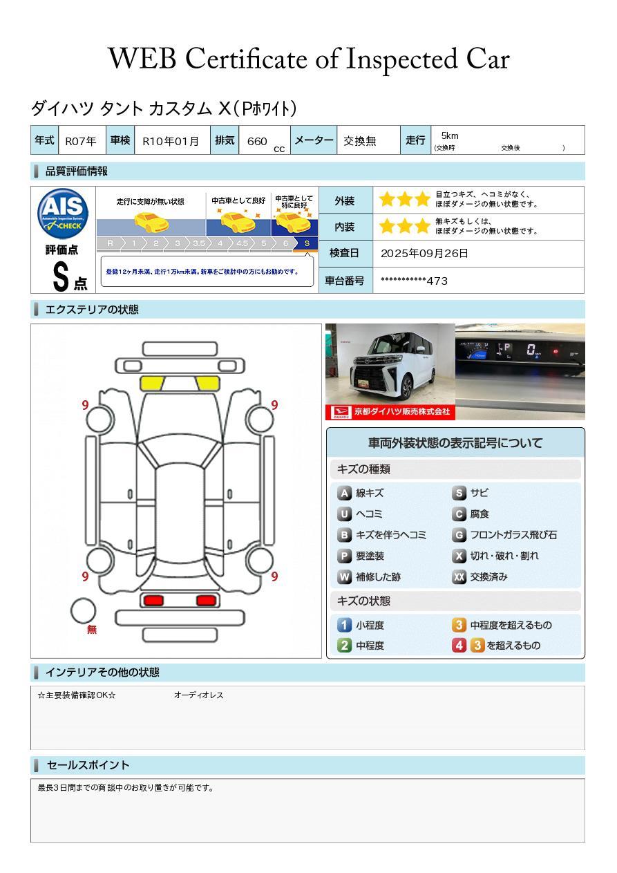 車両状態証明書付き