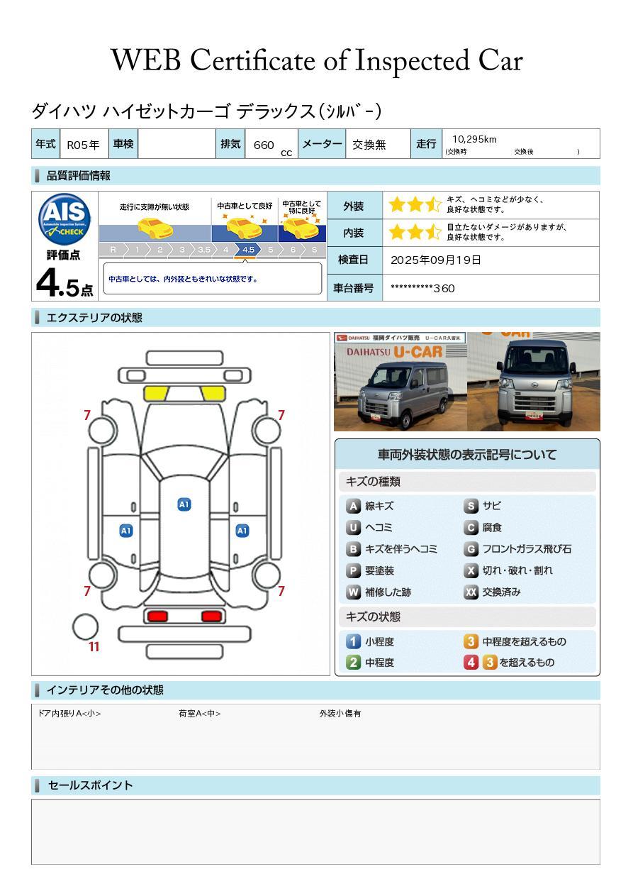 株式会社AISの車両状態証明書となります。
