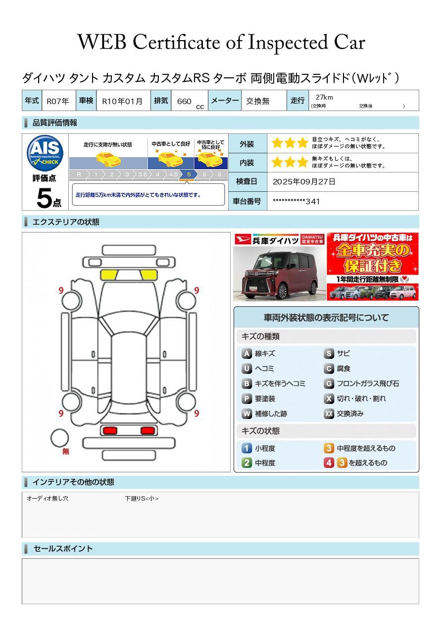 車両状態証明書が付いておりますので、安心してお選び出来ます。詳しくは、スタッフまでお気軽にお問合せください。