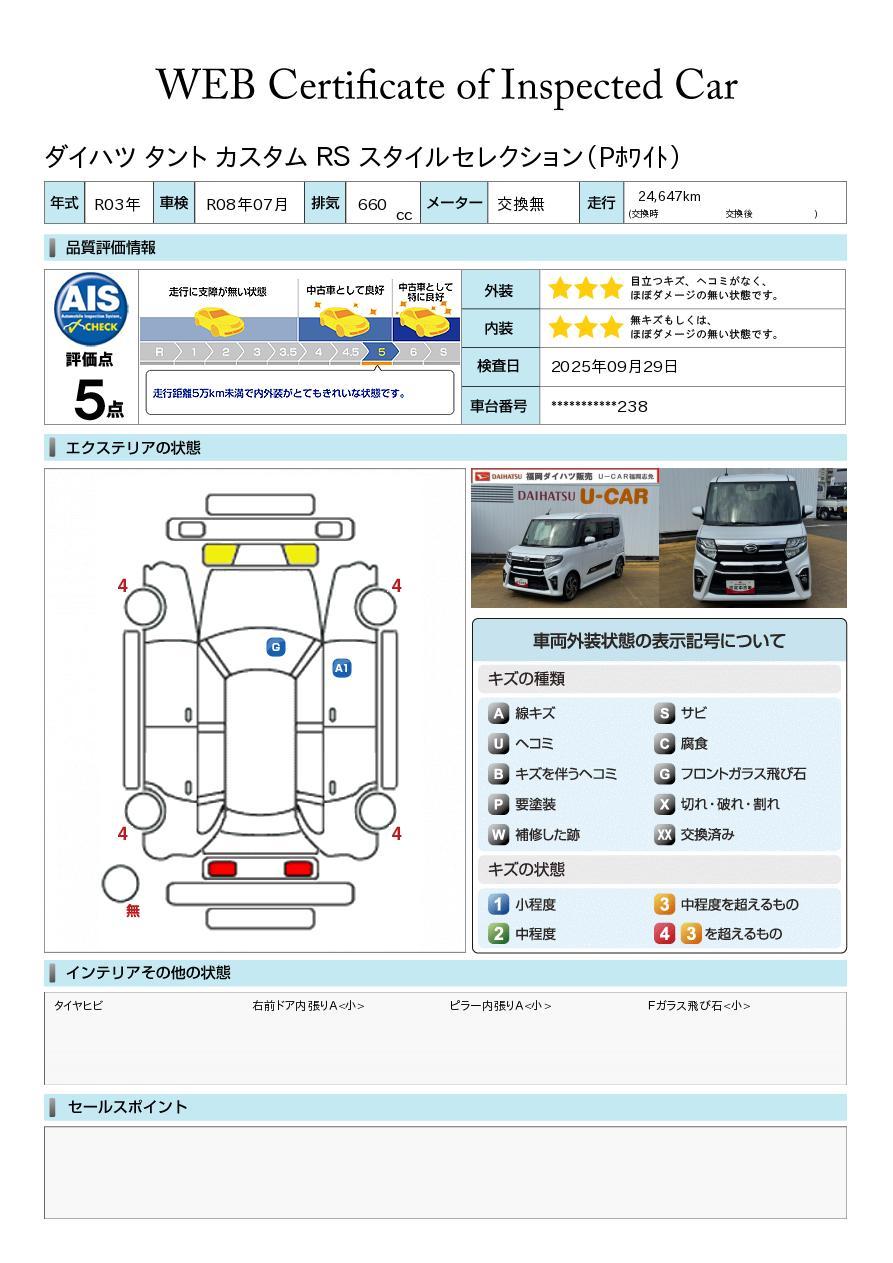 ダイハツ認定中古車なら展示車両の状態を開示しております。展示車両に自信があるからこそ出来るサービスです。