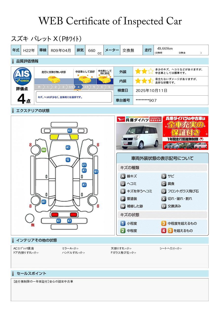 車両状態証明書付き