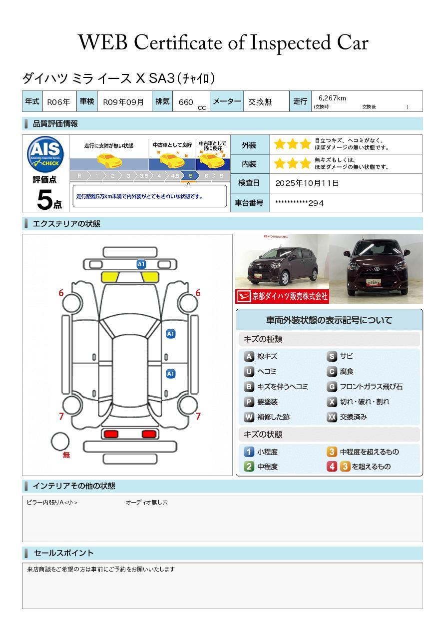 車両状態証明書付き