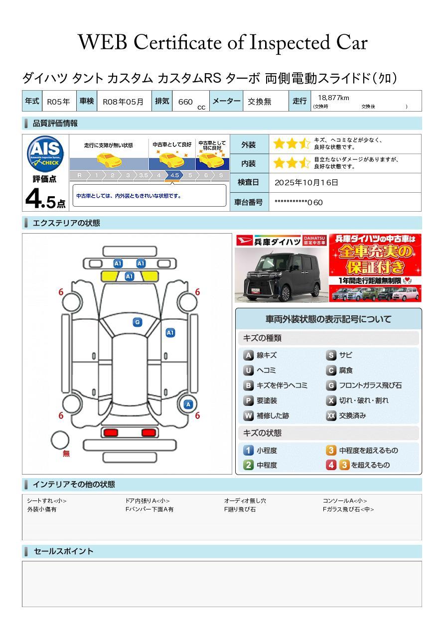 車両状態証明書が付いておりますので、安心してお選び出来ます。詳しくは、スタッフまでお気軽にお問合せください。