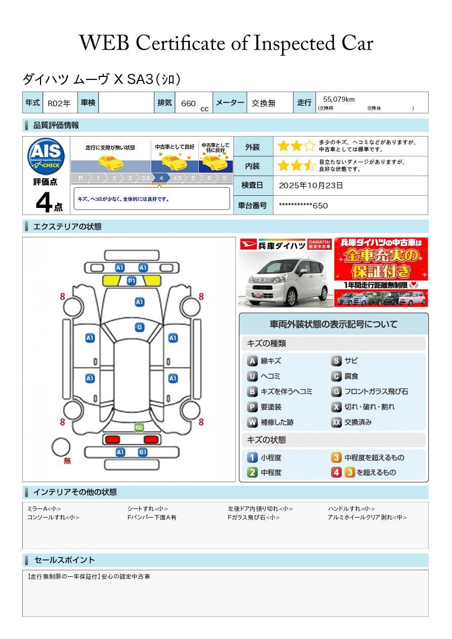 ダイハツ認定中古車なら展示車両の状態を開示しております。展示車両に自信があるからこそ出来るサービスです。