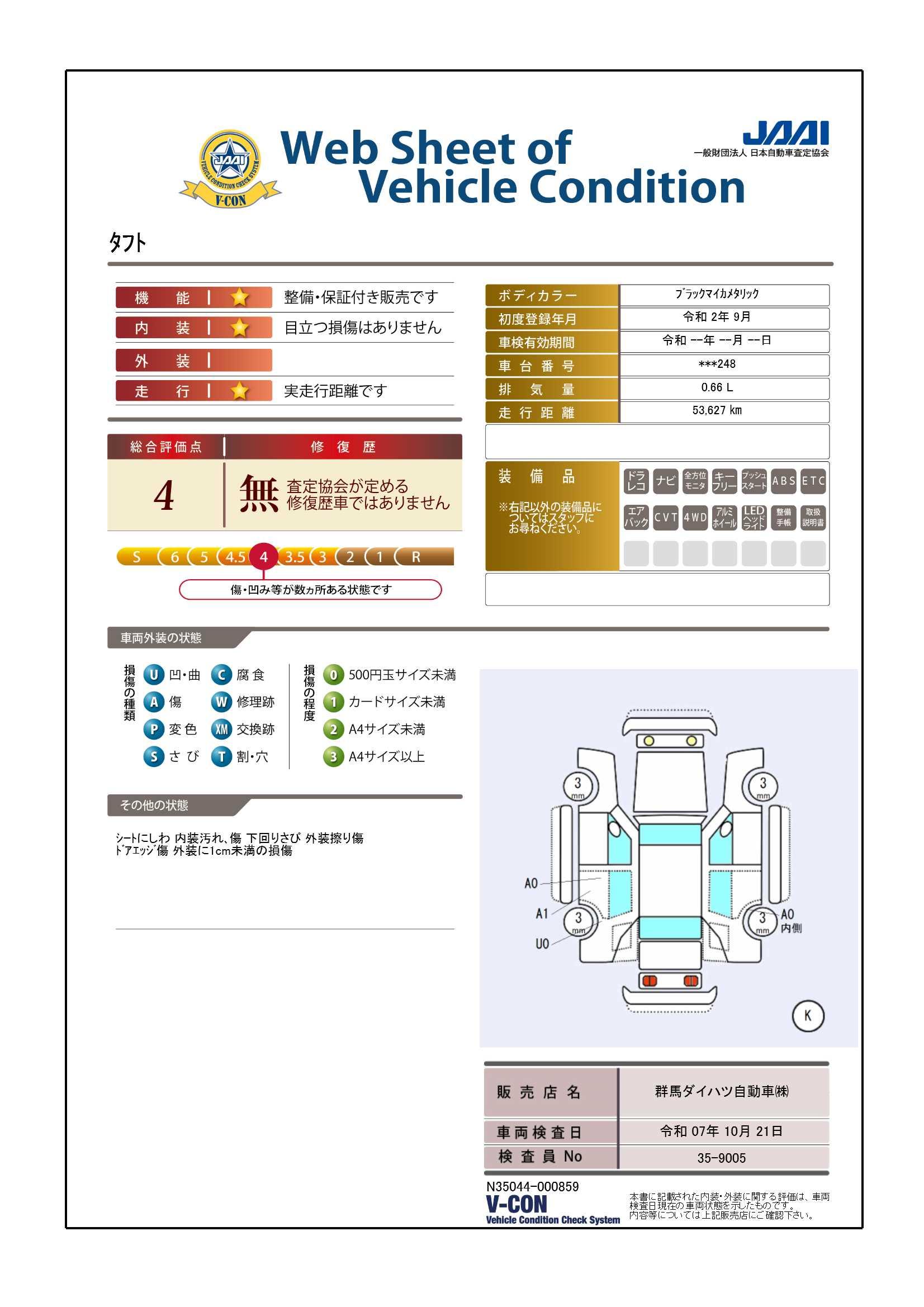 一般財団法人 日本自動車査定協会の車両状態証明書となります。