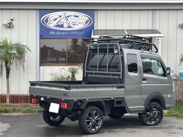 【スペシャル大特価!】送料込み!カスタム多数のスーパーキャリイが今だけの大チャンス! ※送料は離島のお客様は別途頂戴いたします。 仕事にも遊びにも使える、カスタム満載のスズキ スーパーキャリイ Xが入庫しました! 平成30年式で走行距離は27,000kmと低走行。修復歴もなく、まだまだこれから活躍できる一台です。 この車両の最大の魅力は、なんといっても一目で違いがわかる圧倒的なカスタムの数々です。 ・インチリフトUPにオーバーフェンダー、そしてワイルドなタイヤホイールで、他にはない唯一無二のスタイルを実現。 ・フロントにはフロントバンパーエアロ、上部には利便性抜群のルーフラック、キャリアも装着済み。 ・室内もこだわりが満載。3Dカーボンシートやアルミシート、シートカバー、フロアマットなど、細部にまで手が入っています。 さらに、アクセル・ブレーキペダル、バックミラー、ソケットカバーといった小物まで統一感のあるカス…