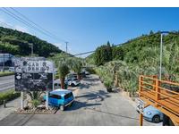 常時10台程度の弊社自慢のリフトアップ系カスタムカーがヤシの木とオシャレに展示されております。