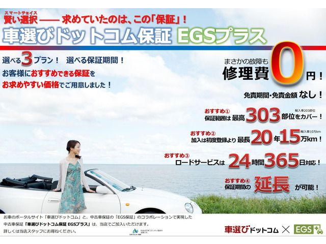 保証が付いています。車両価格には購入後の保証費用が含まれており、保証書が交付されます。保証条件や内容は販売店によって異なりますので、詳しくは各販売店へお問い合わせください。