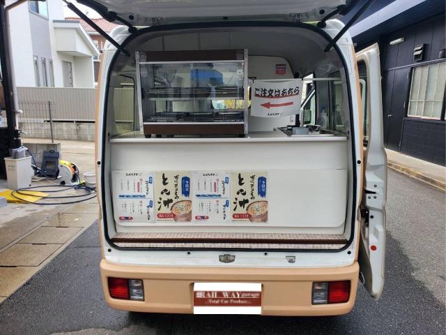 ☆H.30(2018)年 スズキ エブリイ GA☆ 80リットル届出可能です! キッチンカーや移動販売車として是非お買い求めください! ホットショーケース付属! 最後の2枚に記載しております赤丸の機材(発電機・冷蔵庫)につきましては付属しておりませんので それを加味してご検討をお願い致します。 納車前のエンジン洗浄で、エンジン内部のカーボン質の汚れを特殊な液剤で徹底洗浄。 これにより、長期間にわたって安心してお乗りいただけます。納車時には点検も兼ねてしっかりとケアいたしますので、さらに安心です。 ※写真は実際の車両とは異なる場合がありますので、ご了承ください。 事業内容のご紹介 株式会社RAIL WAY のホームページをご覧いただきまして誠にありがとうございます。 当社の事業内容を簡単ではございますが紹介させていただきます。 注文販売 株式会社RAIL WAYではお客様がご希望される車種や色、走行数、価格などを全国のオートオークシ…