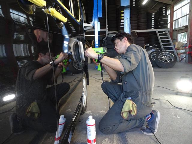 2柱リフト1台、リフト1台完備で点検、メンテナンス、カスタムまでお客様のカーライフをサポート致します