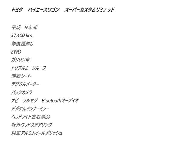 ハイエース 2.4 スーパーカスタムリミテッド トリプルムーンルーフ スーパーカスタムリミテッド トリプルムーンルーフ ワンオーナーナビバックカメラ