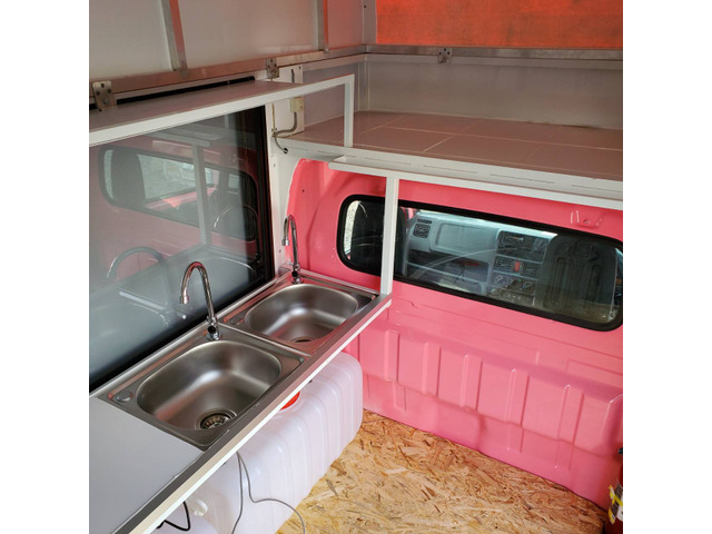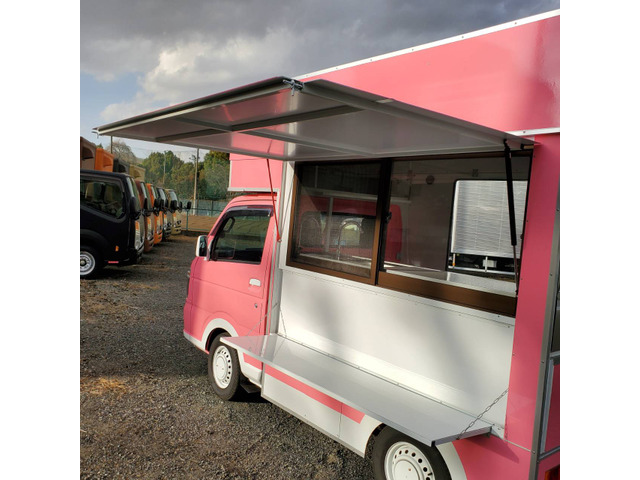 スズキ キャリイをご紹介します。 令和5年式、ピンク色の軽トラックで、走行距離は26,007kmです。 この車両はフロントに修復歴があります。かなりビビットなカラーですのでキッチンカーとしての移動販売車にぴったり。 販売口が2箇所あるため、スムーズな接客が可能です。新しいビジネスを始めたい方におすすめの一台です。 シンク2槽作業台付 給排水タンク80L*2 貨物登録です。 設備動作未確認。 ★本車両は現状販売、保証なしの車両です。 主だった仕入れはリースアップや大手業者オークションなどが中心です。 格安で販売させて頂くために本車両は未整備状態で販売させて頂いております。 整備等をご希望のお客様はお問い合わせください。 車両仕入時に50kmほど自走にて走行しましたが、走る、曲がる、止まる では異常ありませんでしたが 全ての機能が正常であるかを確認できておりません。 ★諸費用込の内容について☆ ・車検付き車両は残存の車検…