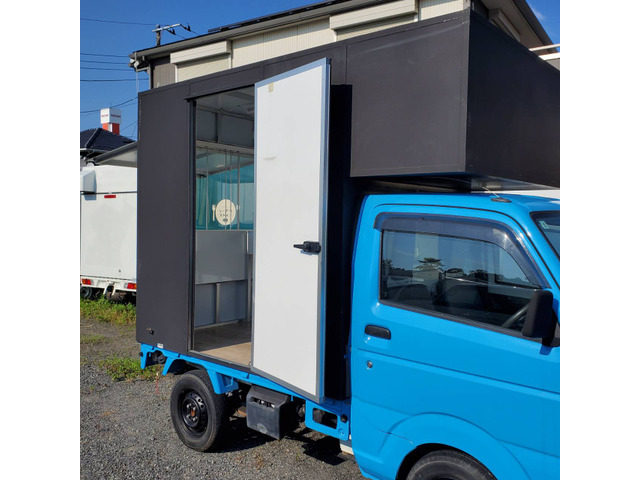 スズキ キャリイ、平成26年式のブルーの軽トラックです。35,385km*1の低走行で、修復歴もありません。 青黒のツートンカラーのキッチンカ―です。 販売口二か所、2槽シンク、給排水タンク、作業台、換気扇、外部電源口を装備しています。 ETCやドラレコ、エアコン、パワステなど便利な装備が充実しています。 仕事でも日常使いでも頼れる相棒になってくれること間違いなし。ぜひこの機会にご検討ください。 冷蔵庫などの機器のご相談もできますのでお気軽にご連絡ください。 ★本車両は現状販売、保証なしの車両です。 主だった仕入れはリースアップや大手業者オークションなどが中心です。 格安で販売させて頂くために本車両は未整備状態で販売させて頂いております。 整備等をご希望のお客様はお問い合わせください。 車両仕入時に50kmほど自走にて走行しましたが、走る、曲がる、止まる では異常ありませんでしたが 全ての機能が正常であるかを確認できて…