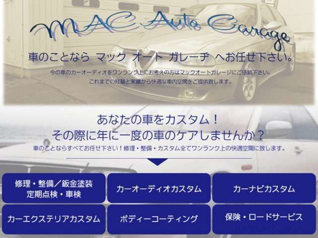 愛車堂 マック・オート・ガレーヂと申します! お車のことなら何でも当店へ♪ 店舗裏に展示場がございます!いつでもお気軽にご覧ください! 店舗場所は看板が目印になります。 沿線沿いから入った場所にありますので、場所がわからない等いつでもご連絡く…