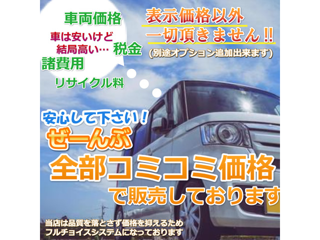 販売表示価格には、お客様にお車をお渡しする迄の価格が全て含まれておりますので、注文間際や引き渡しの際に、あれもこれも必要だと追加の費用は一切掛かりませんのでご安心下さい