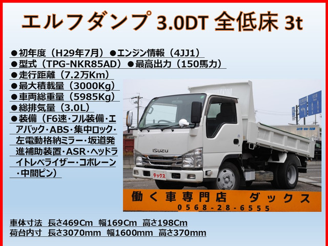 エルフ 3.0 ダンプ フルフラットロー ディーゼル ターボ 全低床 コボレーン 3t