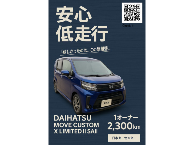 ★ダイハツ ムーブ カスタム ★X リミテッド2 SA? ★1オーナー ★2500? ★車検令和7年12月 ★14インチアルミホイール ★シートヒーター ★ナビ・TV 安全機能 ★全周囲カメラ・バックカメラ ★スマートアシスト?搭載 (被害軽減(自動)ブレーキ、車線逸脱警報機能、前方に加えて後方にも対応しているペダル踏み間違い時加速抑制装置、先進ライト、先行車発進お知らせ機能) ★新車時保証書・取扱説明書 ★記録簿 ※ユーザー様より買取させていただきました。 まだ新車時の匂いがするムーブカスタムです。 走行2500?と超低走行です。 ご覧頂きありがとうございます。 ■この車への「お問合せ」・「無料見積り依頼」、「在庫確認」は、お気軽にどうぞ! ■この車両以外にも「車選びドットコム」におすすめの中古車を掲載しております。 他の在庫車種、お店へのアクセスは【販売店情報ページ】をご覧ください。 問合わせ・来店の際には「中古車情…