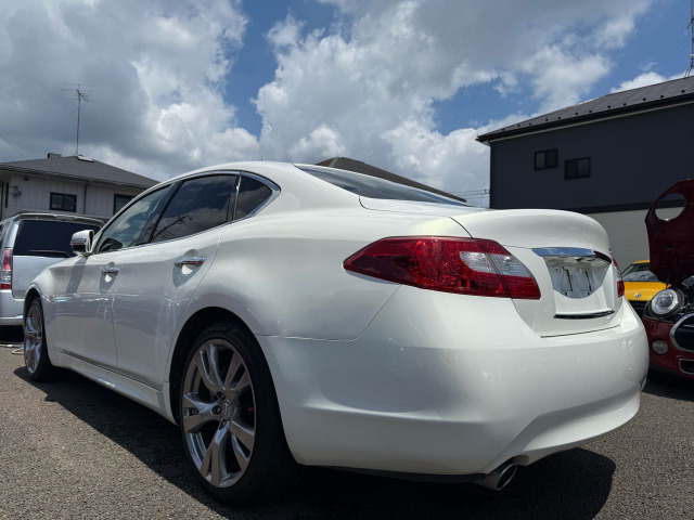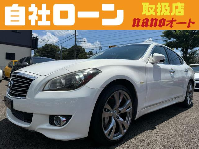 フーガハイブリッド ベースグレード HIDヘッドライト・電動半革シート・HDDナビ・DVD再生・Bluetooth接続・サイド・バックカメラ・OPエアロフォルムバンパー・リアスポ・追従クルコン・ETC