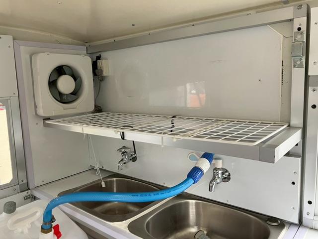 パネルバン キッチンカー 移動販売車 フードトラック 1面跳上式売窓付き 2槽シンク 作業台