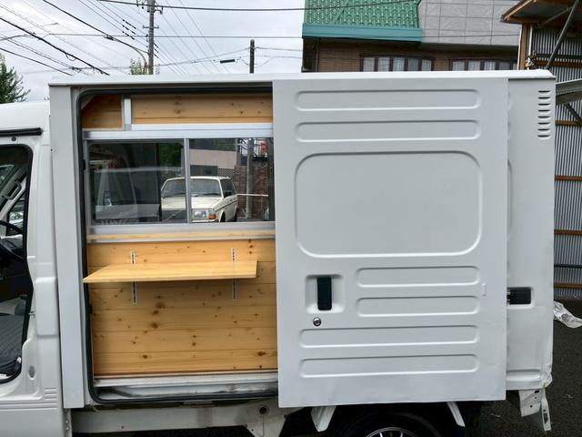 - ハイゼットトラック パネルバン キッチンカー 移動販売車 フードトラック 1面跳上式売窓付き 2槽シンク 作業台