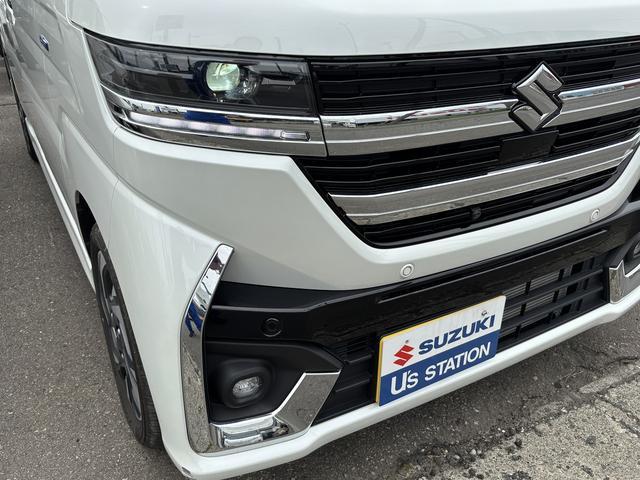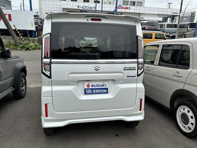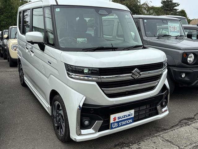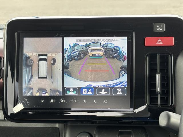 スペーシアカスタム ハイブリッドXSターボ 届出済未使用車 4WD 9インチ全方位モニター付メモリーナビ フルセグTV HDMI スズキセーフティーサポート スズキコネクト バイザー フロアマット付