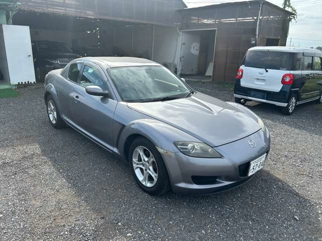 RX−8 タイプS 純正6速マニュアル入庫 バッテリー交換済 エンジン始動確認 社外分離型ETC キレース HIDライト 純正18インチアルミ ローダウン ナビ黄ばみあります