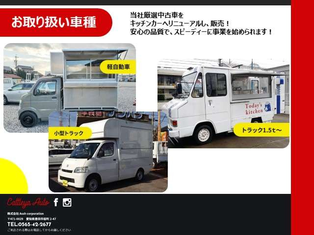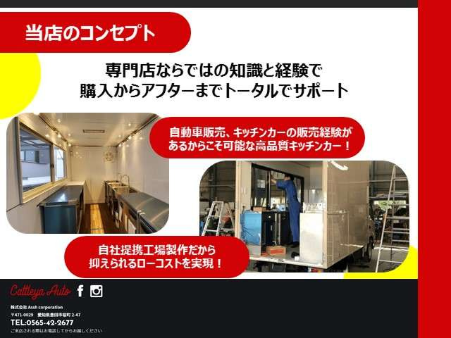 【キッチンカー専門店 CATTLEYA AUTO カトレヤオート】 ◆新車・中古車の販売からカスタムまでトータル対応 架装・改造、塗装、車検整備、板金までワンストップで対応可能。お客様の要望に応じた内外装の設計・製作を行い、高品質なキッチンカーをお届けし…