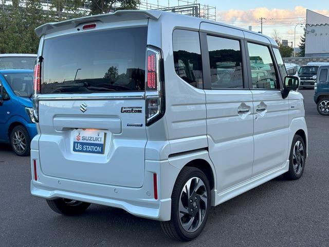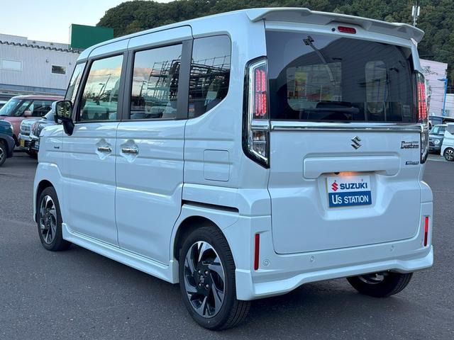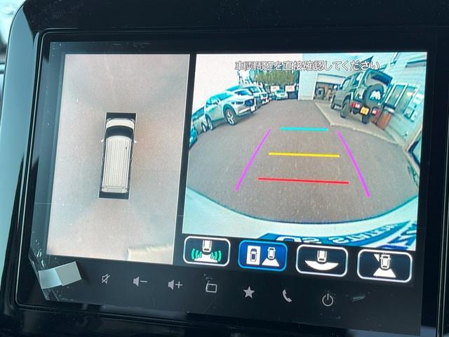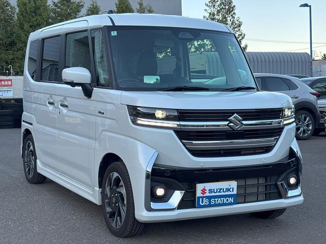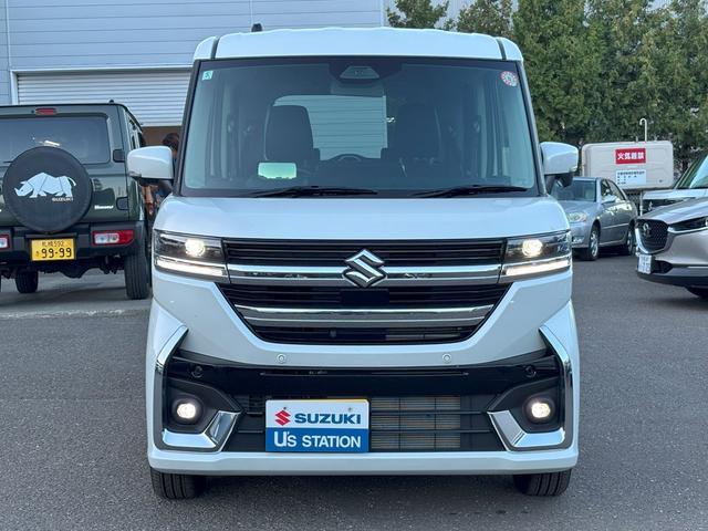 スペーシアカスタム ハイブリッドXSターボ 届出済未使用車 4WD 9インチ全方位モニター付メモリーナビ フルセグTV HDMI スズキセーフティーサポート スズキコネクト バイザー フロアマット付