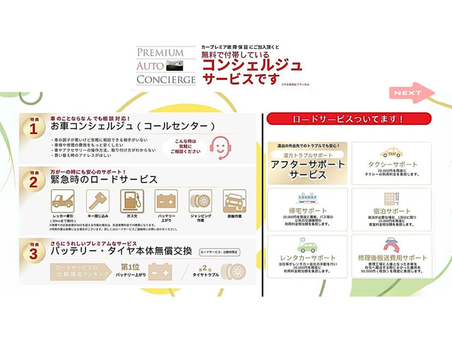 保証が付いています。車両価格には購入後の保証費用が含まれており、保証書が交付されます。保証条件や内容は販売店によって異なりますので、詳しくは各販売店へお問い合わせください。