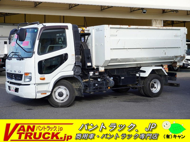 ファイター 4トン アームロール 新明和 3.65t積 ツインシリンダー ベッドレス 積載3650kg キャブバックステップ コンテナ付 網工具入れ 坂道発進補助 ETC 6速MT