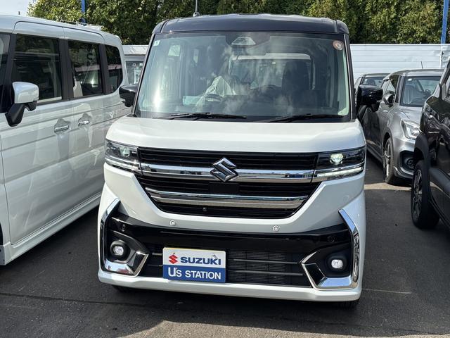 スペーシアカスタム ハイブリッドXSターボ 届出済未使用車 4WD 9インチ全方位モニター付メモリーナビ フルセグTV HDMI スズキセーフティーサポート スズキコネクト バイザー フロアマット付