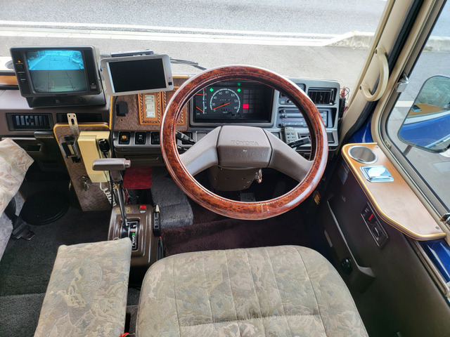 コースター LX 6人乗り仕様 社外HDDナビ フルセグ DVD フリップダウンモニター 後席テーブル 対面シート ベット付 ETC