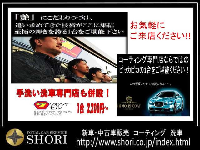 外装はオリジナルコーティングを施し、何年もピカピカでお乗り頂けます!手洗い洗車専門店「ウォッシャーセブン」併設してます! お客様のご来店を心よりお待ちしております!全国販売大歓迎!遠方のお客様もぜひご検討ください!