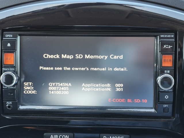 ジューク ◆15RS TypeV 禁煙車/バックカメラ/純正ナビ/ETC/CD点DVD再生/スマートキー/電動格納ミラー/横滑り制御装置/マニュアルエアコン/マニュアルライト/肘置き/ブルートゥース