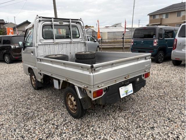サンバートラック ベースグレード 4WD・エアコン・アルミ・EL付ミッション・あおりガード・バイザー・スバル製EN07の4気筒エンジン