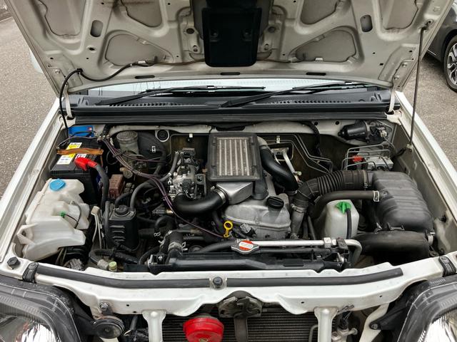 ジムニー 4ナンバー 5MT ターボ 切替え4WD F・Rグリルガード ヒッチメンバーカゴ 外16インチAW リフトアップ公認 外品マフラー ナルディH タイミングベルト交換済 セミバケETC 2名乗