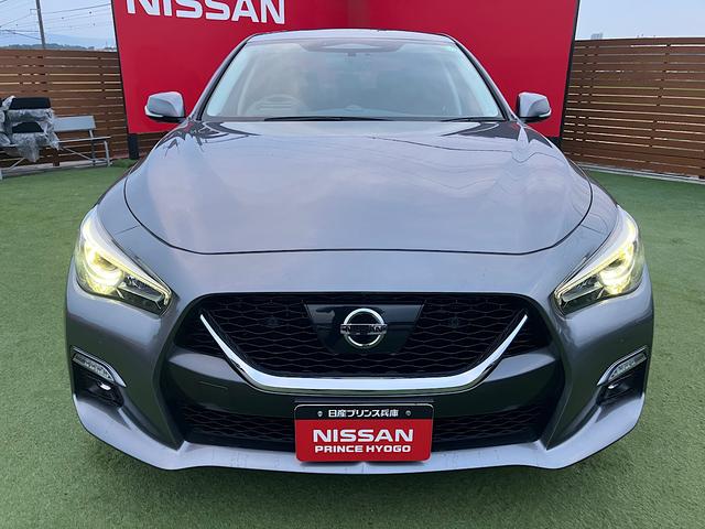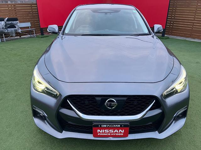 スカイライン 400R ニスモフロントエアロ/リヤスポイラー/黒革スポーツシート/405馬力/パワーシート/シートヒーター/全方位運転支援システム/革巻きステアリング/純正19インチアルミ