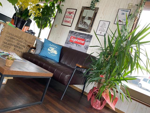 123号線ログハウス調のおしゃれで落ち着いた店舗♪店内は女性でも入りやすいように店内はカフェのようなとっても居心地の良い空間となっており、当店のスタッフがまごころを込めてご対応いたします♪