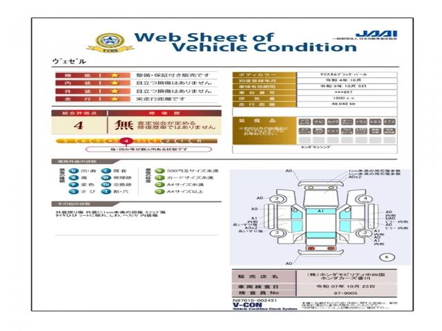 - ※1 「ヴェゼル 2021年モデル e:HEV Z」のカタログによる情報です。実際の物件状態を保証するものではありません。詳細スペックは販売店へお問い合わせください。 詳細スペックは販売店にお問い合わせください。