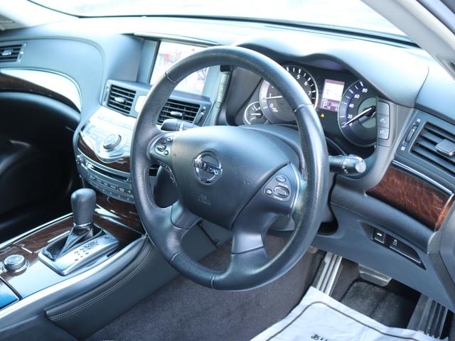 フーガハイブリッド ベースグレード 黒半革シート/ナビTV/Bluetooth/バックカメラ/HID/ETC/前席電動シート/パワーオットマン/オートライト/スマートキー/プッシュスタート/